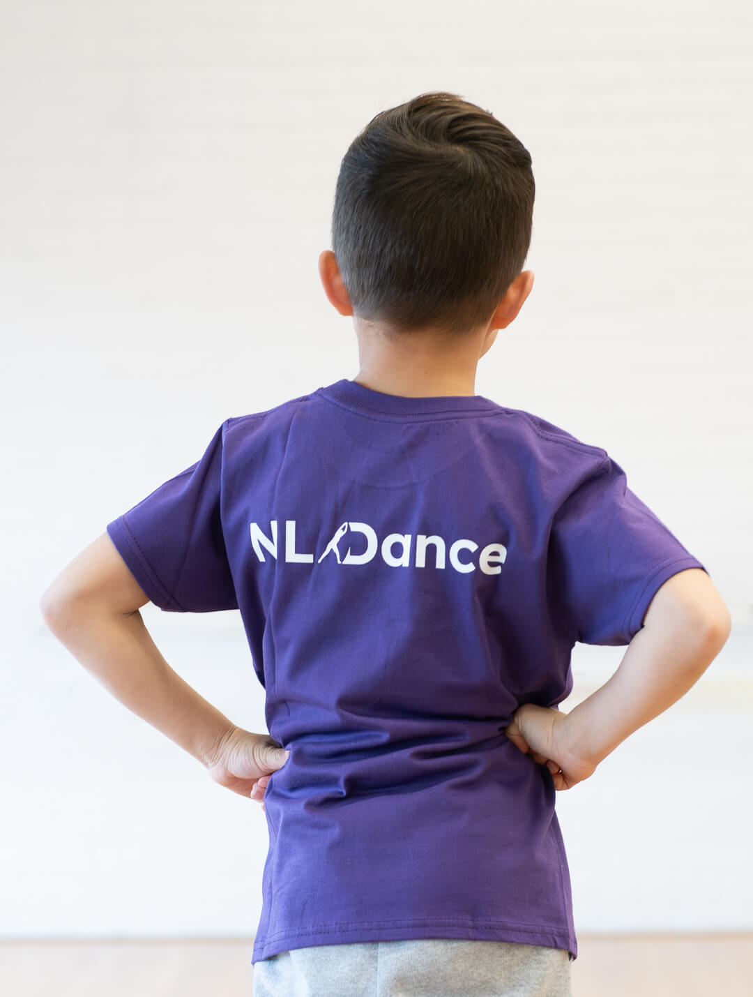 Paars NL Dance shirt met op de voorkant onze slogan en op de achterkant het logo.